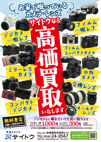 【受付店舗】写真とカメラ サイトウ TEL:0242-24-0567
